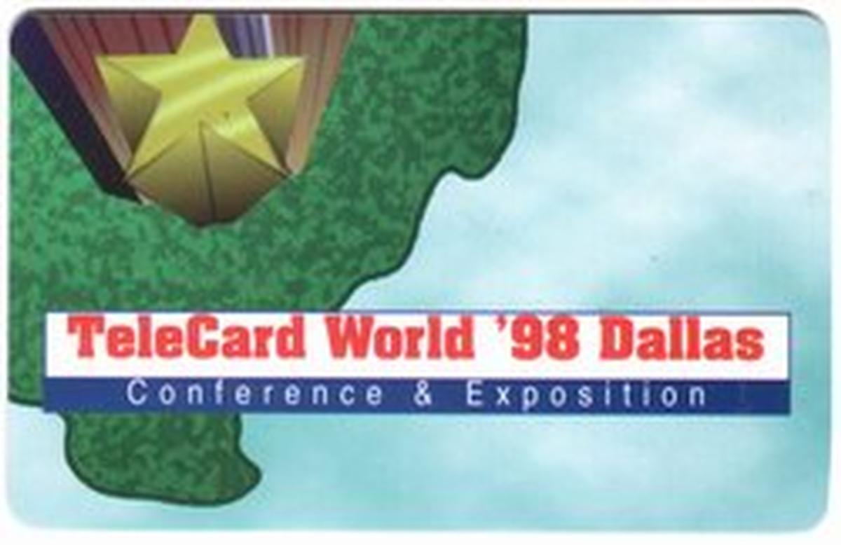 Overall, this phone card serves as a collectible memento from a key industry trade show held in Dallas, Texas in 1998, celebrating the broad international telecom market and technological progress showcased at the event. It offers a tangible piece of telecom history for collectors interested in trade exposition memorabilia or phone cards linked to major telecommunications conferences.