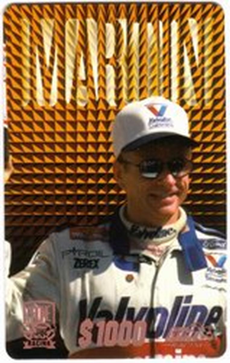 This PhonePak card commemorates racing sports culture with authentic affiliations to NASCAR and recognizable automotive brands. It combines collectible value with the identity of Mark Martin as a notable figure in American motorsports during that era.
