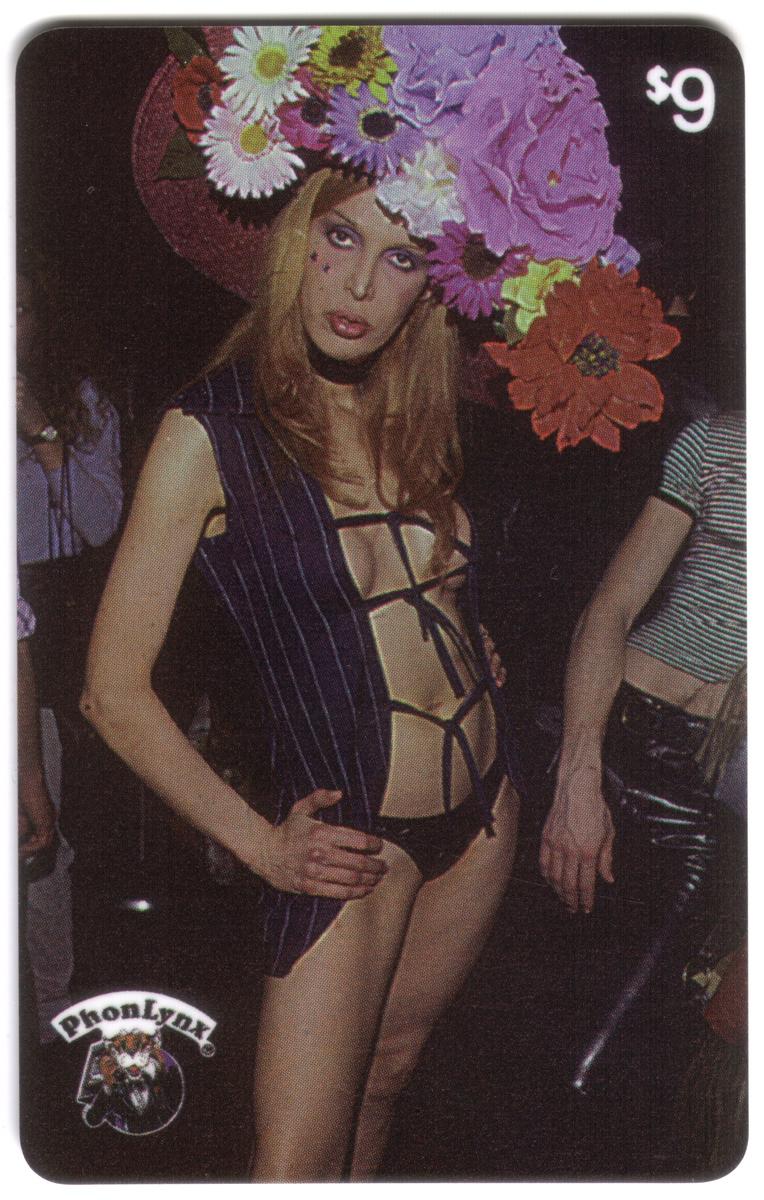Vivid collectible card featuring a bold, avant-garde portrait with floral headpiece, edgy fashion, and a vibrant nightlife backdrop, issued by PhonLynx. |