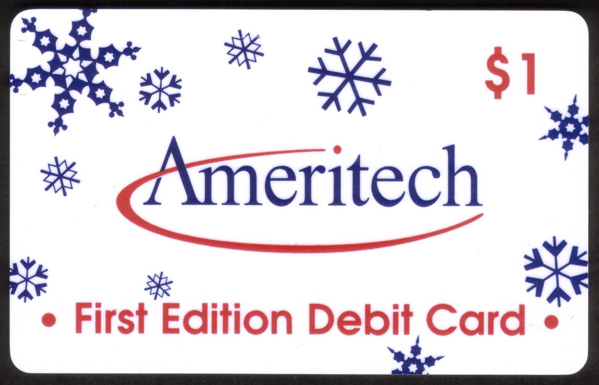 Overall, the card’s design emphasizes the winter snowflake concept with a professional appearance matching the “First Edition Debit Card” status. The inclusion of “Ameritech” associates the card with the company name, and the term “PROOF” confirms it as a sample or test version for this collectible debit card series.