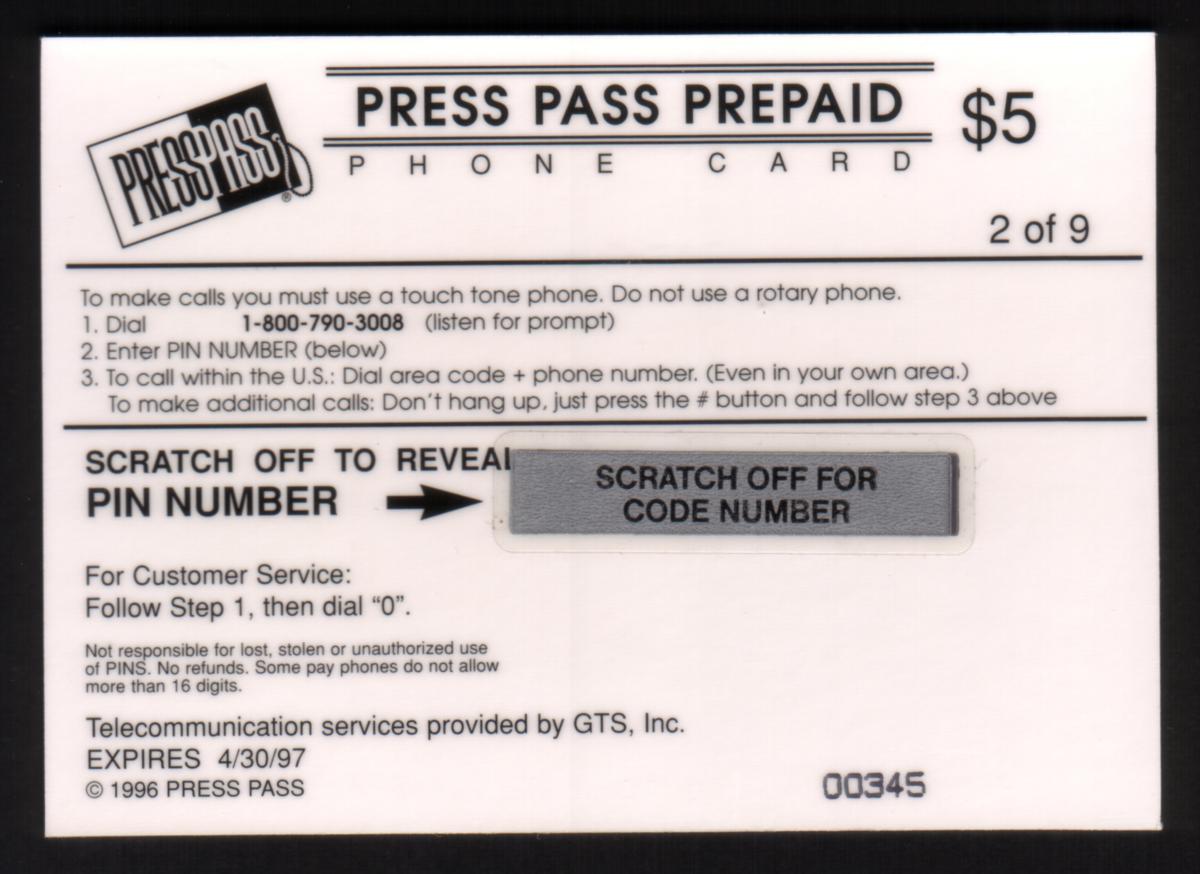 Since we have the world's largest inventory of USA phonecards for collectors, you will not necessarily receive the identical serial/batch/PIN number that we have scanned/pictured.