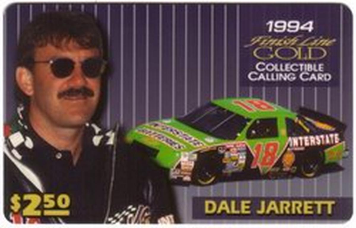 The title "Finish Line Racing" appears clearly on the card, reinforcing the racing theme. The card’s layout uses rich colors and bold text to showcase the intersection of Dale Jarrett’s achievements and the 1994 Gold Series sponsored by Shell Oil. The use of the gold color palette ties into the official series designation. The card is a tribute to Dale Jarrett’s connection with competitive NASCAR racing and his association with key sponsors like Interstate Batteries.