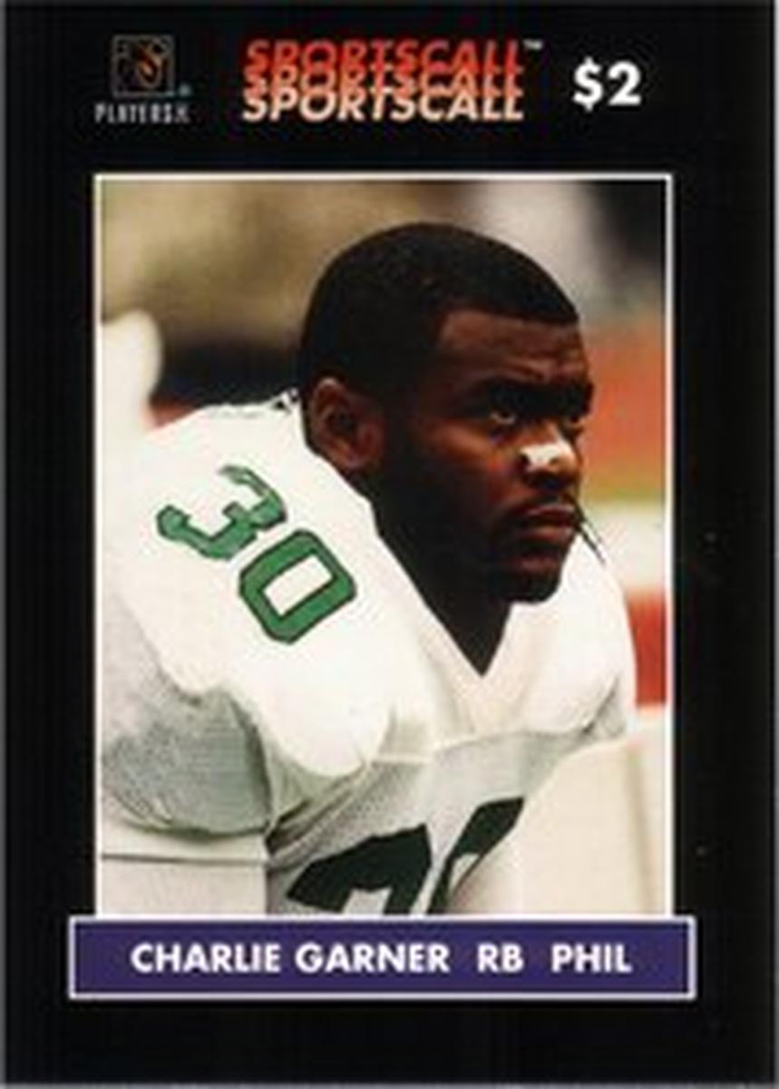Overall, this is an official NFL collectible sports card featuring player Charlie Garner of the Philadelphia Eagles, designed for sports memorabilia enthusiasts and collectors. The focus is on Garner’s identity, team affiliation, and player position within the league.