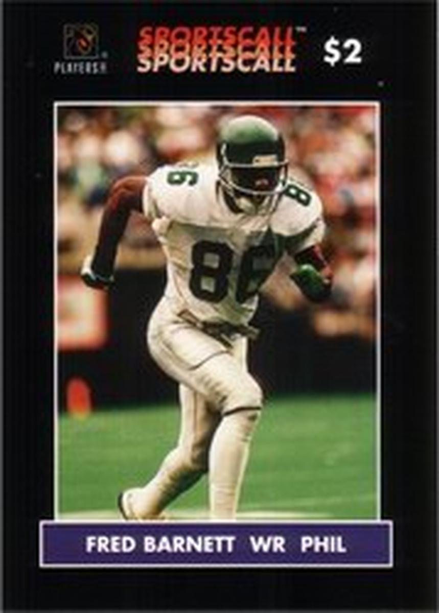 This collectible is part of the SportsCall series and emphasizes NFL sports memorabilia. It serves as a tribute to Fred Barnett’s time with the Philadelphia Eagles, making it a valuable piece for fans and collectors interested in football history and player cards.