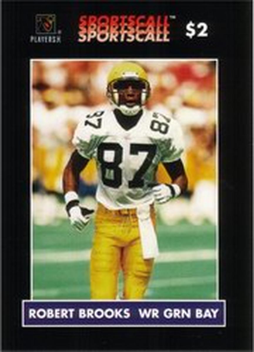 Overall, the card highlights Robert Brooks as an NFL athlete connected to the Green Bay Packers football team and is issued under SportsCall branding. The design and layout focus on his identity and association with professional American football in the NFL.