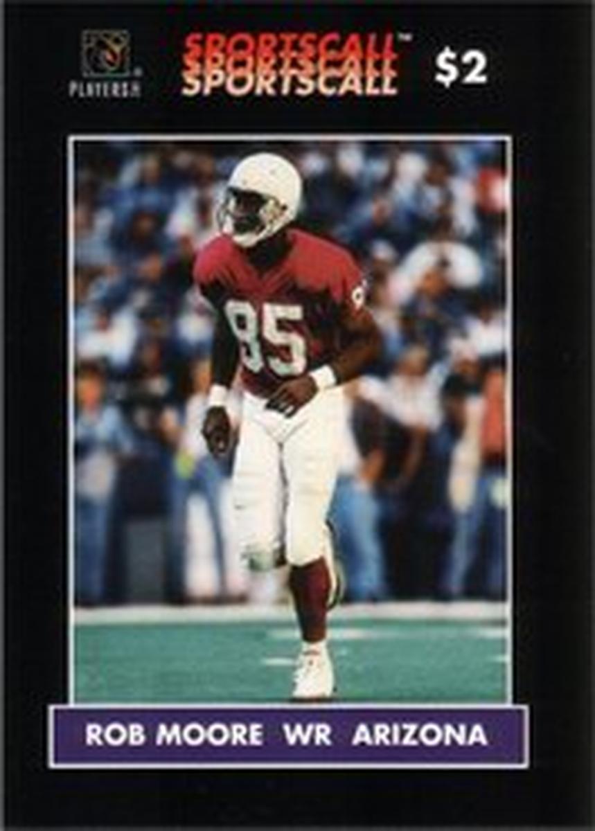 Overall, this collectible card highlights Rob Moore as a prominent NFL player during his time with the Arizona Cardinals. It is part of a sports series featuring football players and carries official branding from the NFL and SportsCall.