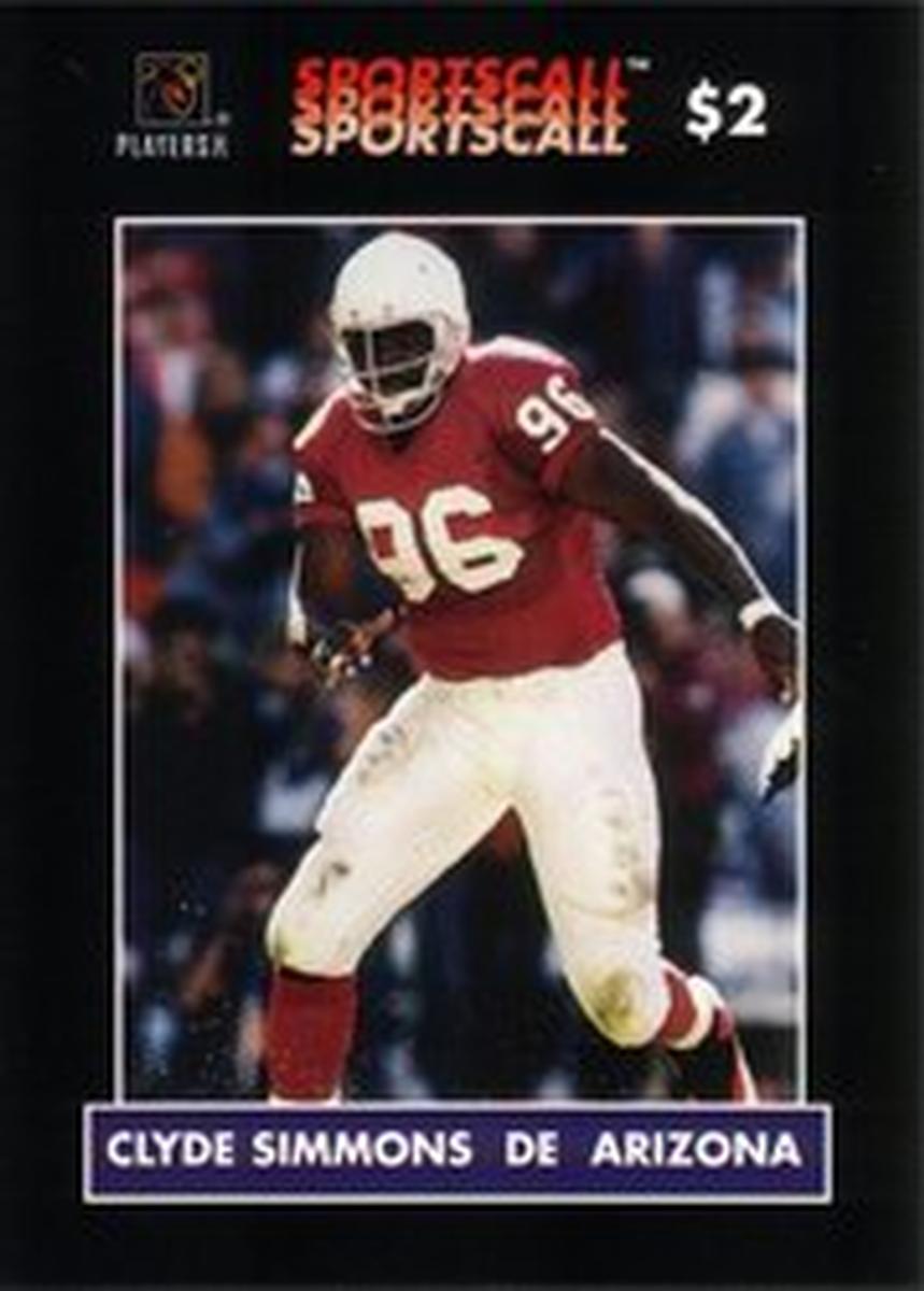 This football card is a collectible item tied to the NFL and the Arizona Cardinals football team, showcasing Clyde Simmons as a recognized athlete within professional football. The card is printed on paper and intended for collectors interested in NFL players and memorabilia.