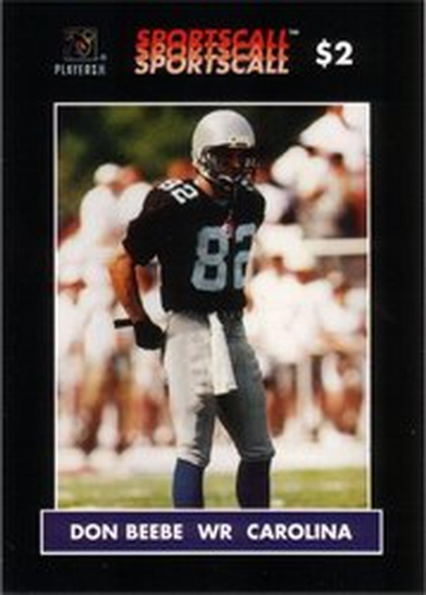 This card is a part of a collection focused on NFL players and is produced on paper stock. It highlights the National Football League and the Carolina Panthers through the visual presentation of Don Beebe, making it a valuable item for collectors interested in football and NFL memorabilia.