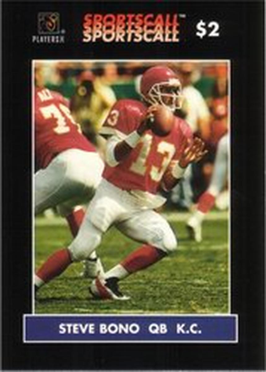 This card serves as a memorabilia piece for fans of Steve Bono and the Kansas City Chiefs, representing NFL sports collectibles connected to football athletes and the league. It emphasizes Steve Bono’s role and association with the Kansas City Chiefs during his NFL career.