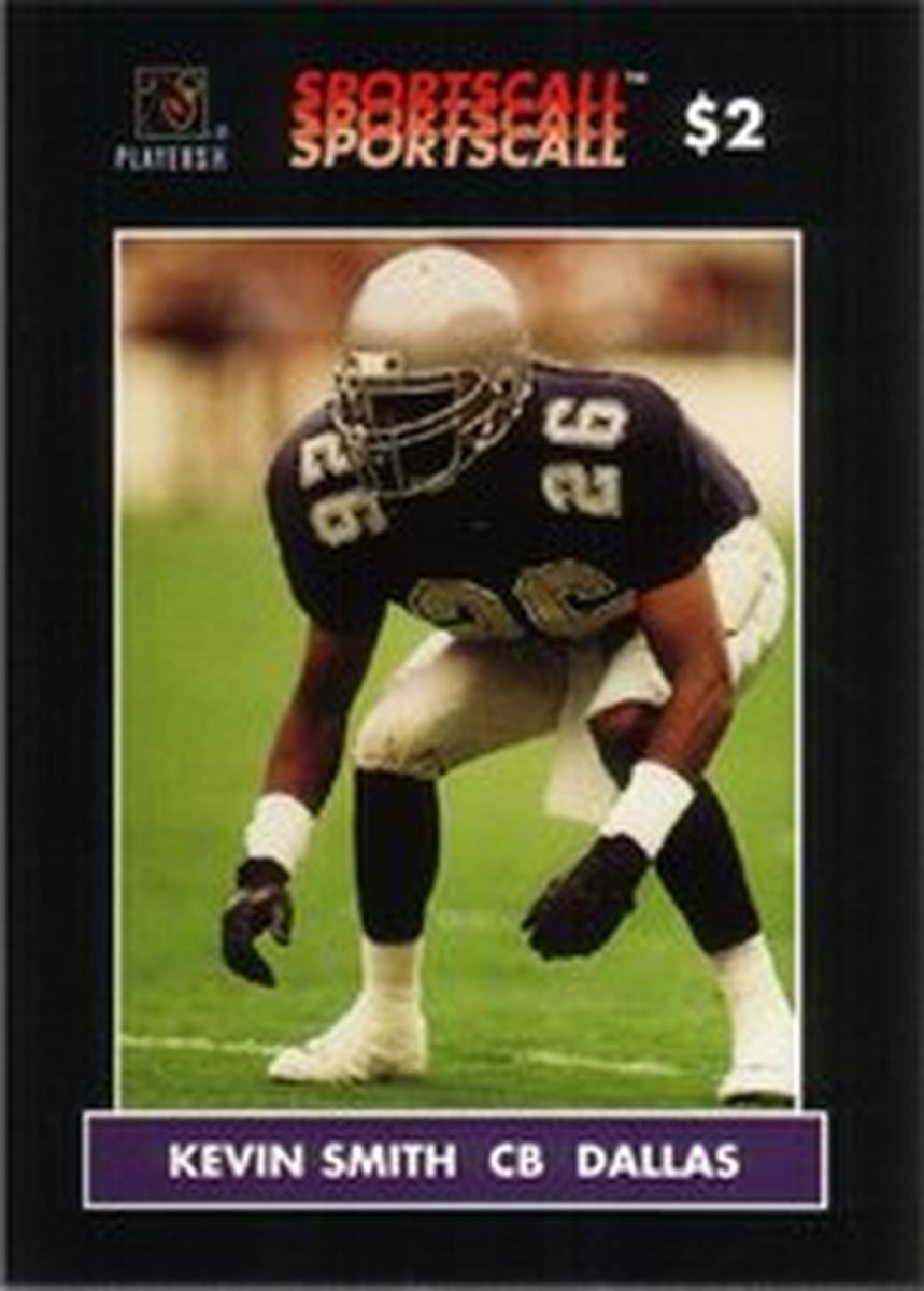 This card is a part of a sports collectible set within the NFL world and features clear printed details that identify Kevin Smith as a professional football cornerback for the Dallas Cowboys. The card’s presentation and layout are crafted to celebrate football sports and player recognition within the NFL.