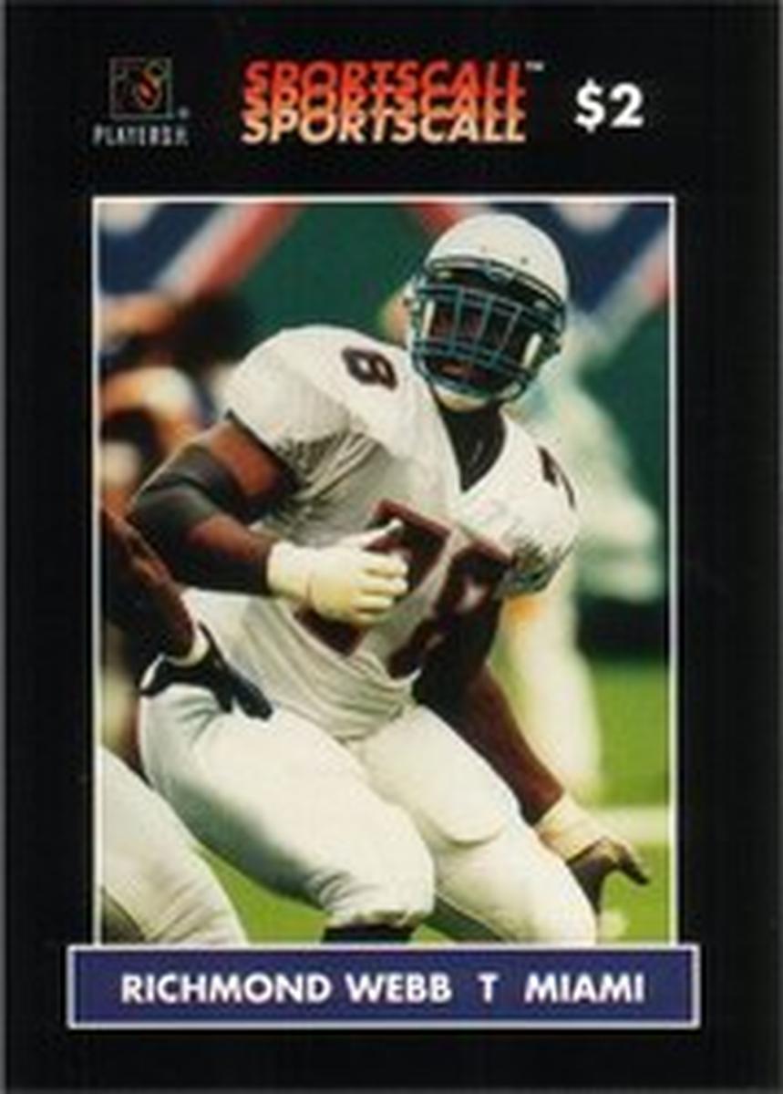 This paper collectible card belongs to a football-themed series centered on NFL players, reflecting the era when Richmond Webb actively played. It is an official licensed product, featuring clear branding from NFL and the NFL Players Inc. organization. The overall presentation is intended for fans and collectors of professional football memorabilia, specifically from the Miami Dolphins franchise.