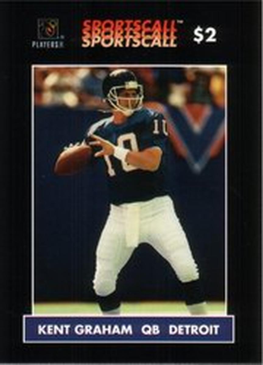 This card is a collectible related to American football and the Detroit Lions team, honoring Kent Graham’s role in the league. It is made of paper and features official NFL licensing marks, underscoring its status as an authentic sports collectible item.