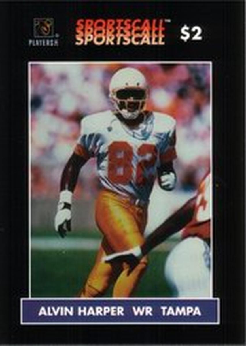 This card is part of a collectible series connected to the NFL and features official football imagery related to Alvin Harper. The design uses clear, bold text and logos that directly identify the league, the player, and his team without additional ornamentation beyond the action-focused photograph.