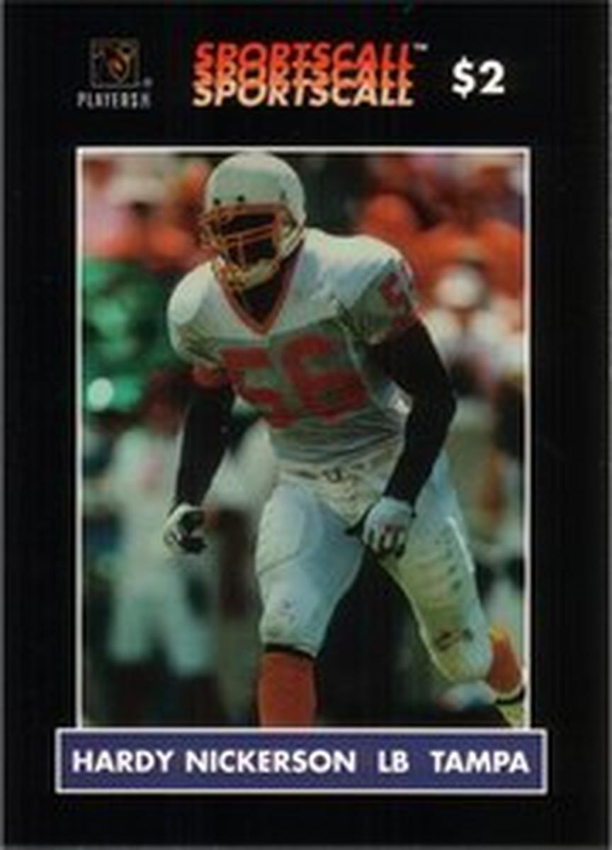 Hardy Nickerson is the central figure on the card, representing the Tampa Bay Buccaneers football team. The design is straightforward, focused on showcasing the player with minimal additional graphics or distractions. The card is intended for sports memorabilia collectors and fans of NFL football.