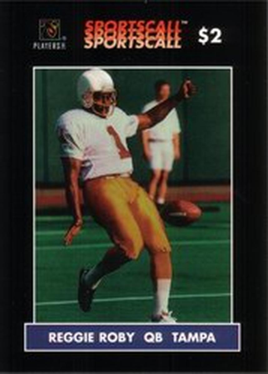 This collectible card features Reggie Roby, identified as a quarterback (QB) for the Tampa Bay Buccaneers football team. The card displays official National Football League (NFL) branding, specifically referencing the NFL Players Inc. Reggie Roby is shown in his Buccaneers uniform. The card is numbered 237, and it is associated with the SportsCall series, printed on paper.