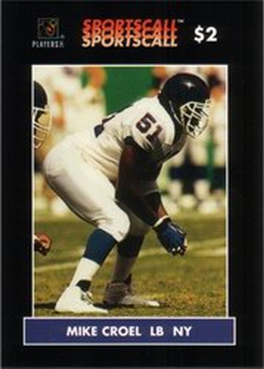 This item is a collectible sports card focused on football, featuring Mike Croel’s image and statistical details related to his role on the New York Giants team. It serves as a memorabilia piece for fans of the NFL and collectors of sports trading cards.