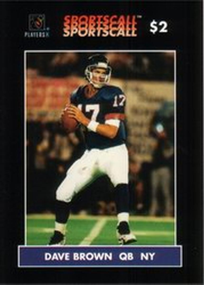 Overall, this collectible captures an important figure from the NFL, focusing on Dave Brown of the New York Giants, and is part of a branded series by SportsCall dedicated to football players.