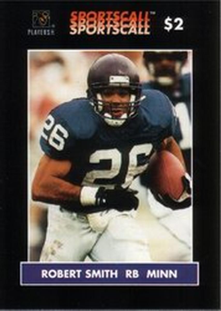 This SportsCall card combines elements of football memorabilia and collectible paper cards, celebrating Robert Smith’s role in the NFL. It is designed for collectors interested in professional football, providing a tangible keepsake connected to NFL history and Minnesota Vikings heritage.
