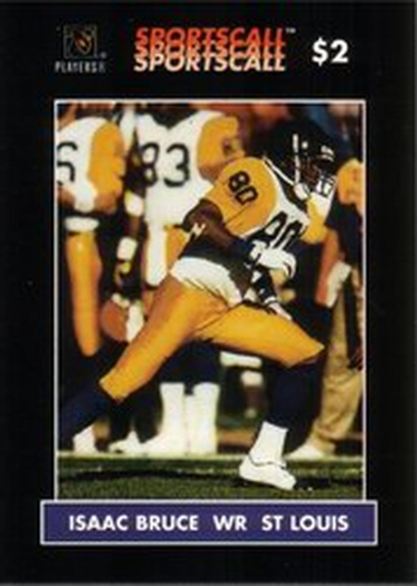 This card combines the appeal of NFL sports and collectibles, specifically representing Isaac Bruce’s contribution to the St. Louis Rams. The design focuses on Bruce’s image and the NFL branding, making it a notable item for fans of American football and trading card collectors.