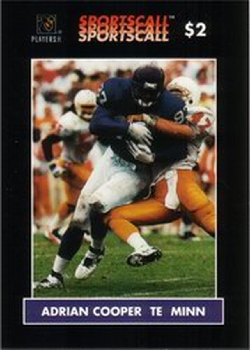 The card’s overall presentation confirms it as an NFL collectible item focused on Adrian Cooper, one of the Minnesota Vikings players. It is part of a sports card series dedicated to football and officially recognized by the National Football League.