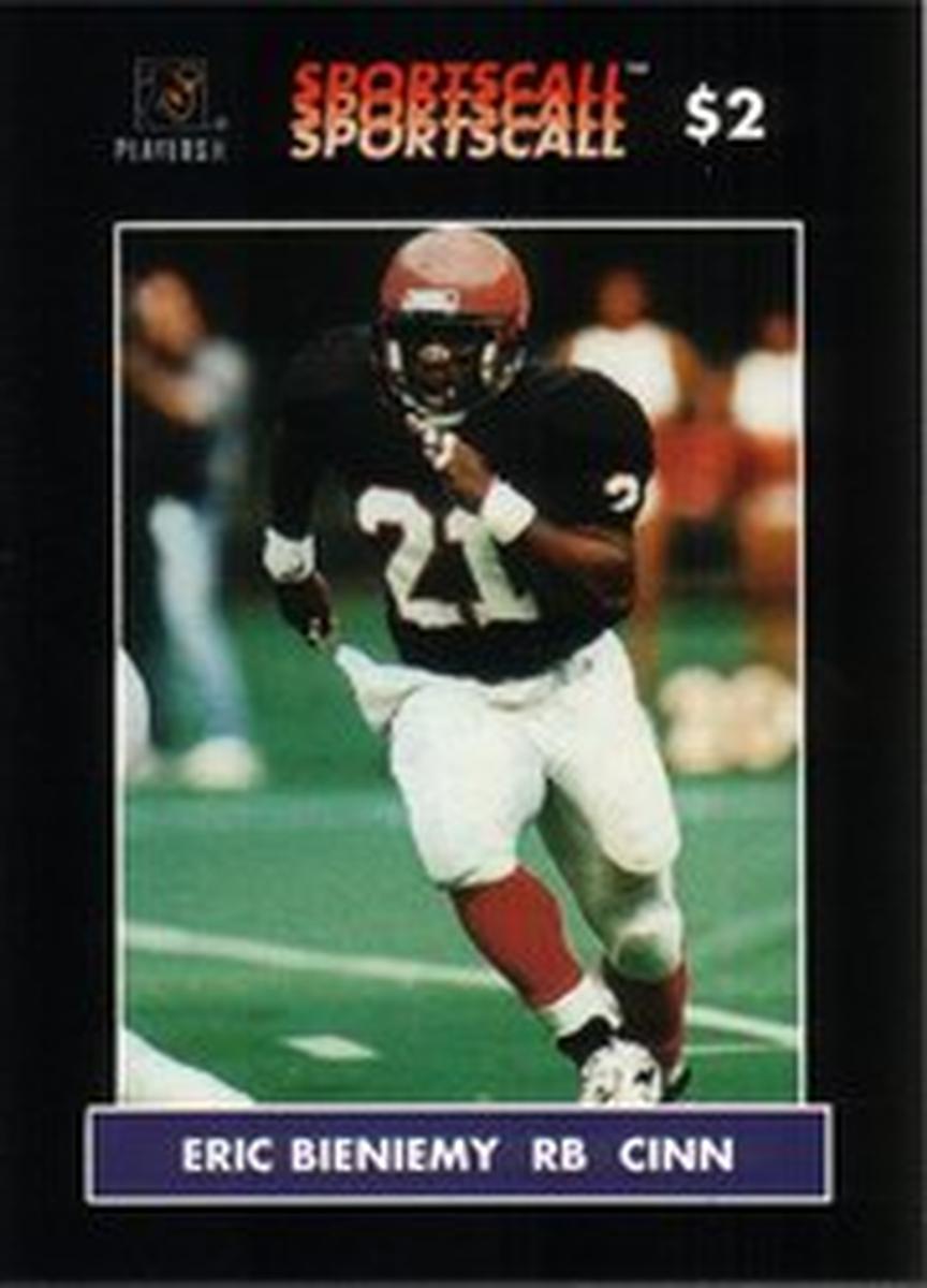 Overall, this card represents an officially licensed collectible football card centered on Eric Bieniemy’s career with the Cincinnati Bengals in the NFL. It is printed on paper, emphasizing its nature as a sports collectible item linked to professional American football.