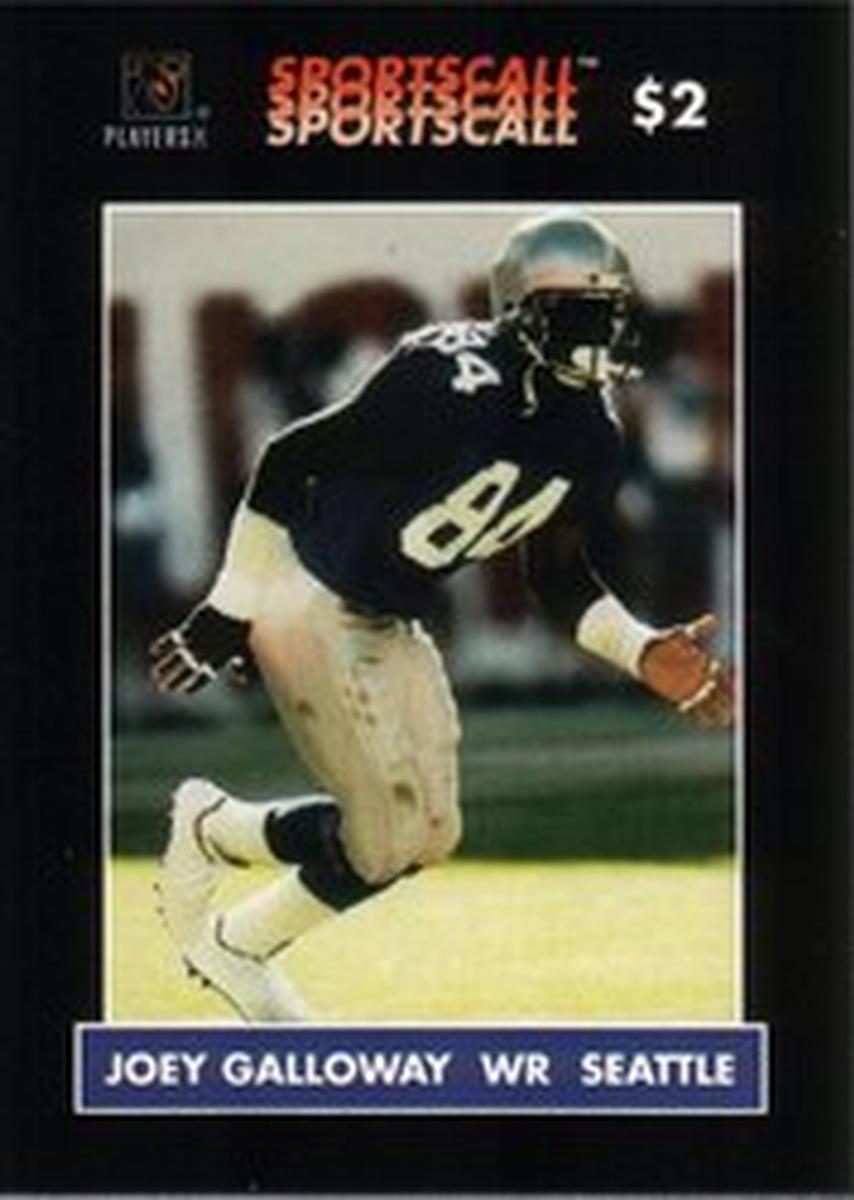 This card is a paper collectible from the SportsCall series, focusing on football players and the NFL. It serves as a representation of Joey Galloway’s career with the Seattle Seahawks, providing fans and collectors with a piece of professional football history associated with this specific player and team.