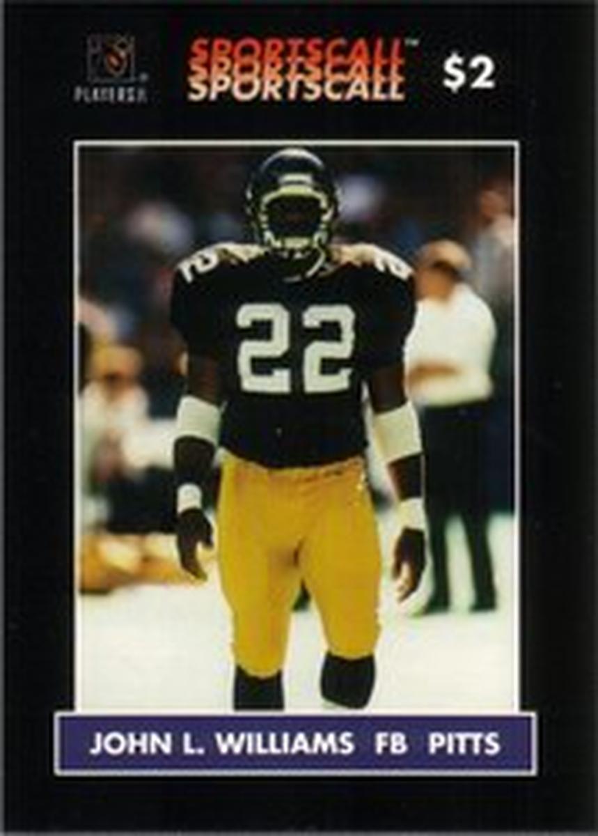 This collectible card features John L. Williams, a former football player for the Pittsburgh Steelers in the National Football League (NFL). The card is numbered 345 and labeled with a $2 value. The card is produced by SportsCall and printed on paper. John L. Williams is depicted wearing the Steelers uniform, and his name is clearly shown on the card.