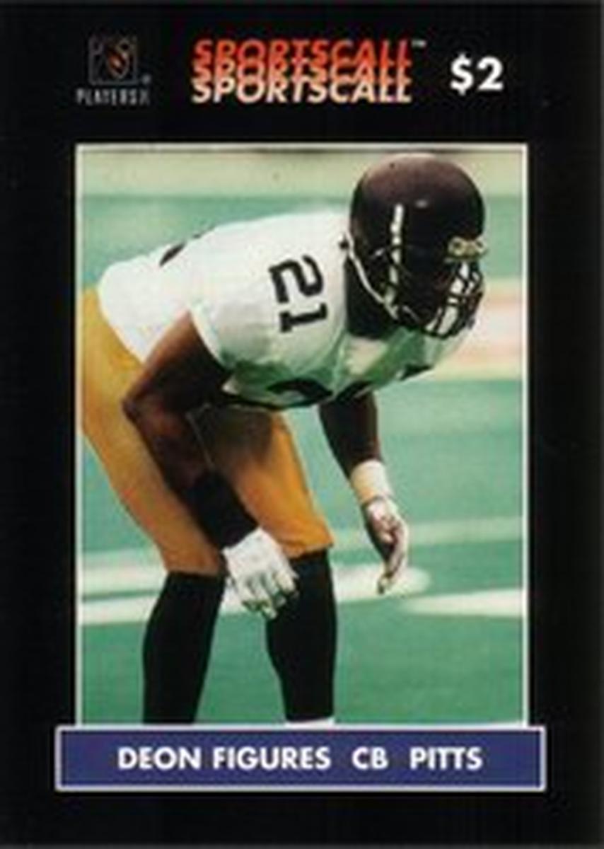 This card is a collectible related to American football, specifically highlighting Deon Figures as a key player for the Pittsburgh Steelers. The overall design emphasizes the NFL and the sport of football, making it a valuable item for collectors interested in NFL merchandise.