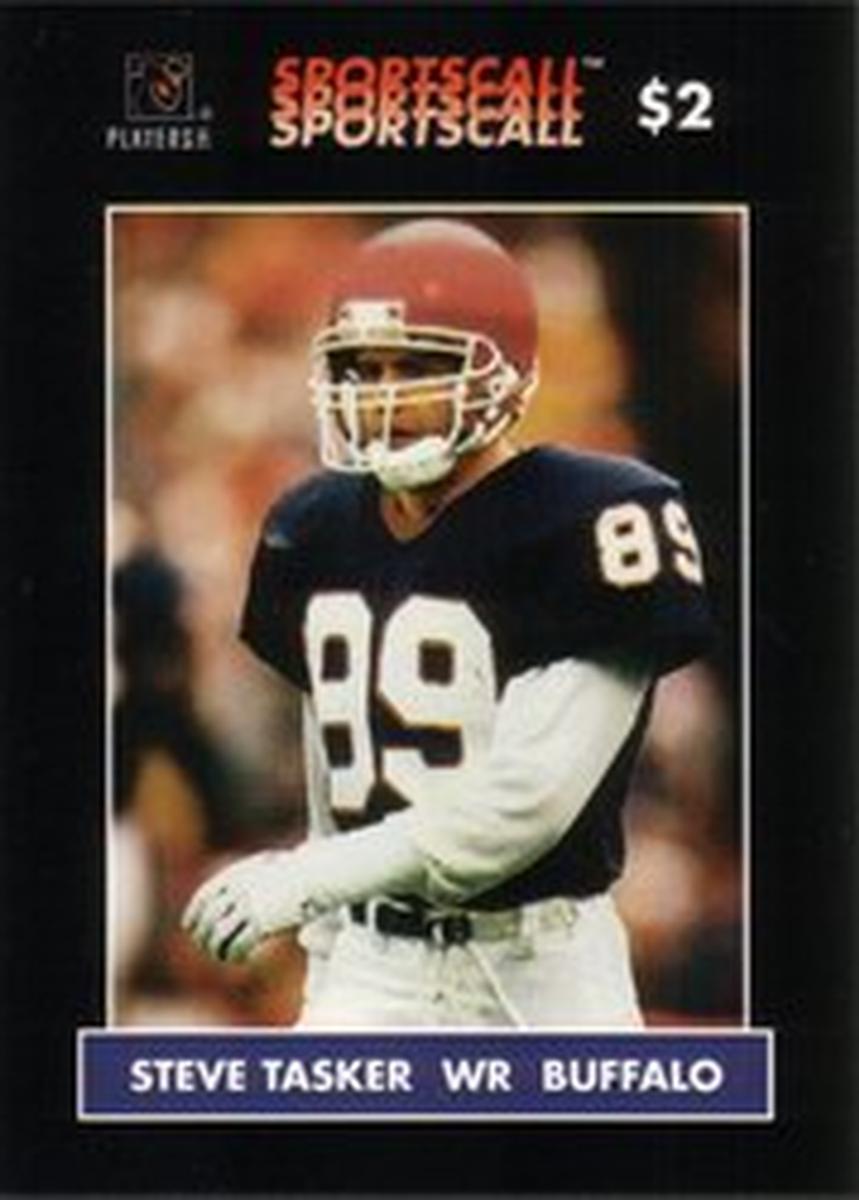This card is a collectible SportsCall item of the NFL, specifically highlighting Steve Tasker’s career with the Buffalo Bills. The card includes the National Football League name and logo, emphasizing its official status. The card’s format and text indicate it is related to American football and celebrates the player’s association with the NFL.
