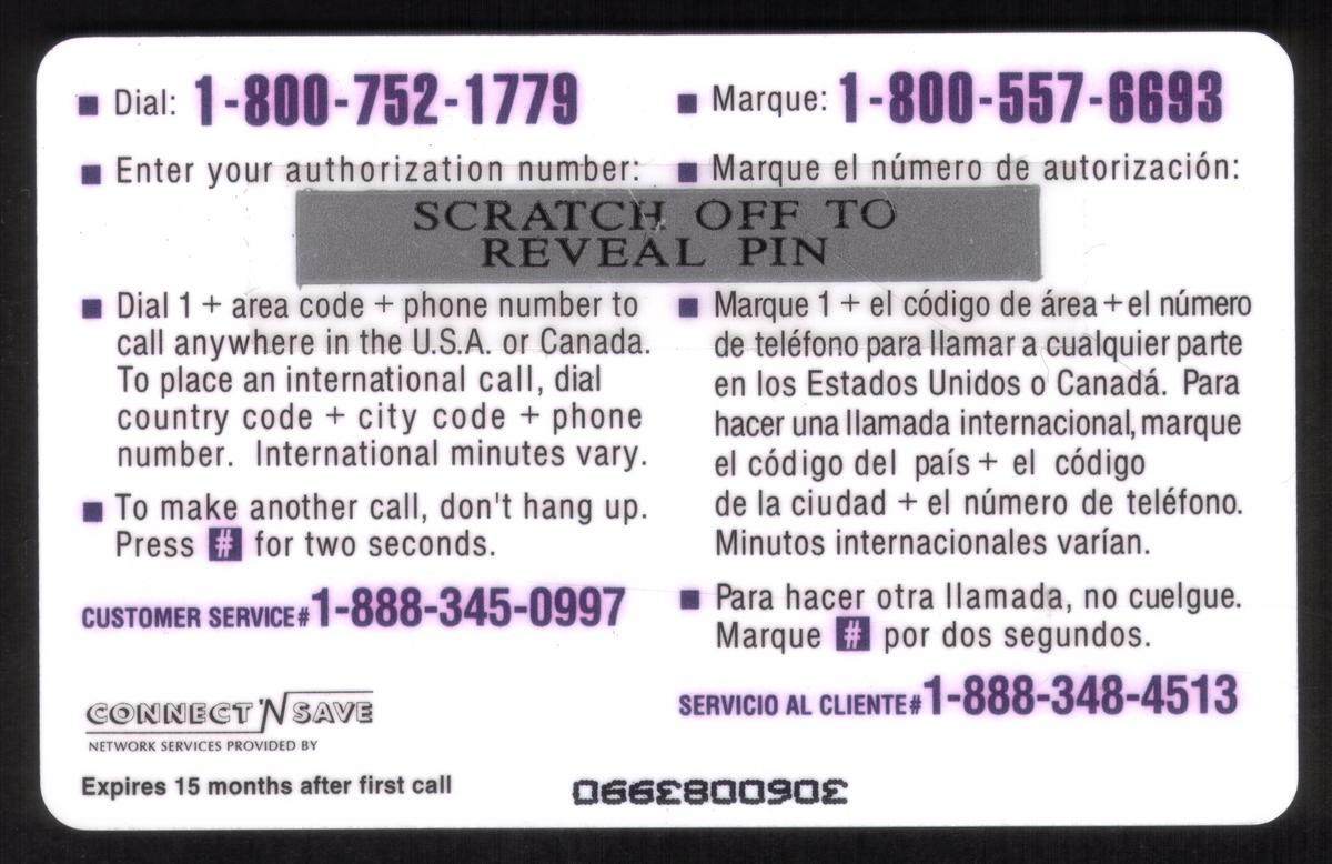 Since we have the world's largest inventory of USA phonecards for collectors, you will not necessarily receive the identical serial/batch/PIN number that we have scanned/pictured.