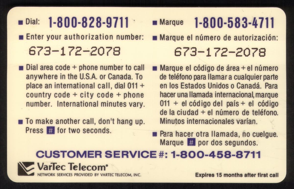 Since we have the world's largest inventory of USA phonecards for collectors, you will not necessarily receive the identical serial/batch/PIN number that we have scanned/pictured.