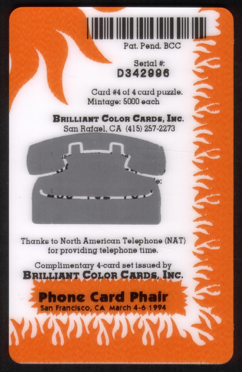 Keywords: Telecard Events, show cards, San Francisco CA, California, Art - fantasy, puzzle, super heroes, phones on phone cards, telephones on phonecards, telecard girl, nat, north american telephone, Brilliant Color Cards