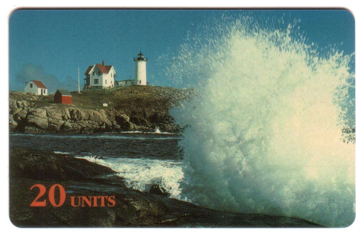 Text on the card includes "20 UNITS" in bold orange lettering positioned near the lower left corner, indicating the card’s unit value. The card reflects the 1992 issue and connects to rural America’s coastal heritage, emphasizing the iconic status of this Maine lighthouse.