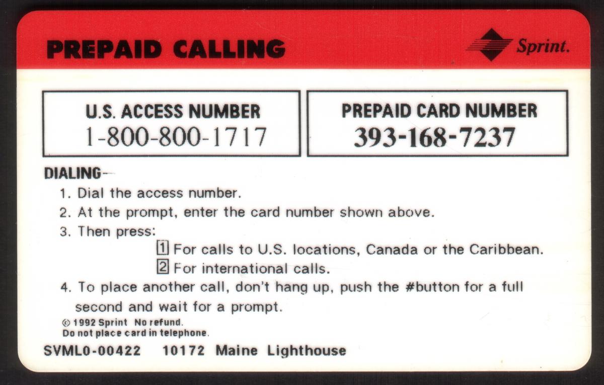 The design presents a vivid and picturesque representation of the maritime landscape, highlighting the interaction between rugged coastal elements and the enduring lighthouse structure. This Sprint-issued phone card celebrates a classic symbol of New England’s nautical scenery.
