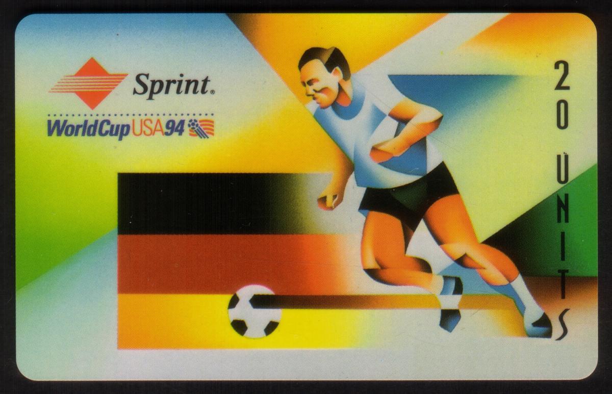 Overall, this collectible highlights the excitement of international soccer with a clear focus on the 1994 World Cup event hosted in the United States, underscored by vivid sport imagery and national symbols. The presence of the Sprint logo ties the collectible to the sponsor, further anchoring it in the period of the tournament.