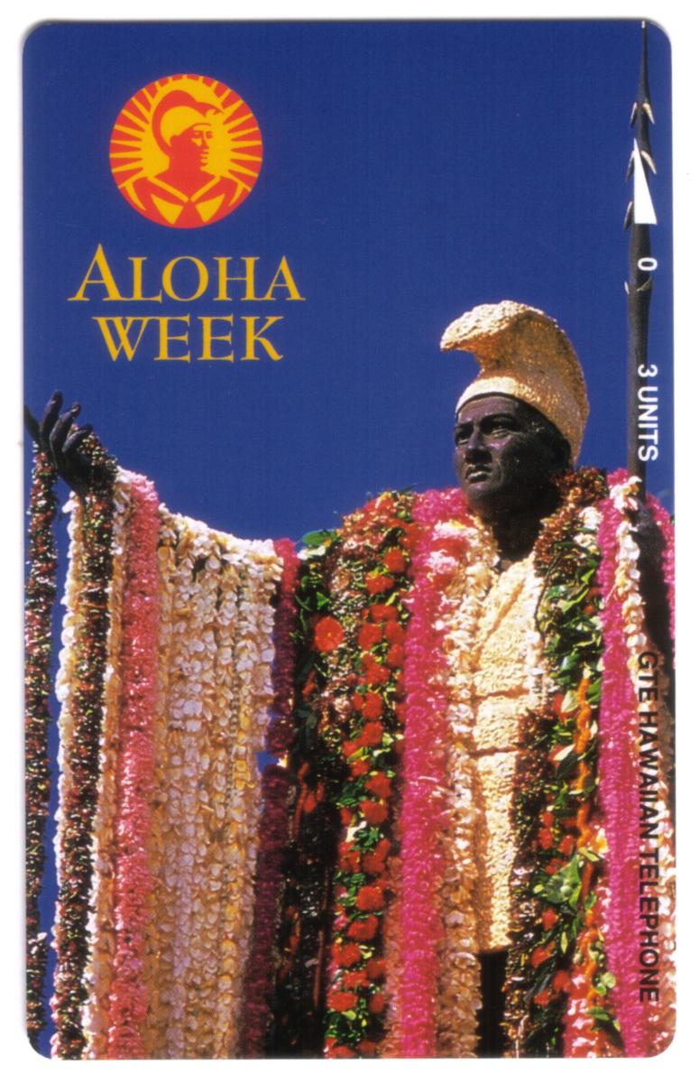 The card also commemorates "Aloha Week" from the year 1992, as displayed in text on the card. The phrase "Aloha Week" refers to an annual celebration in Hawaii that honors Hawaiian culture and traditions. The text elements are presented in a clean, readable style on the card’s face.