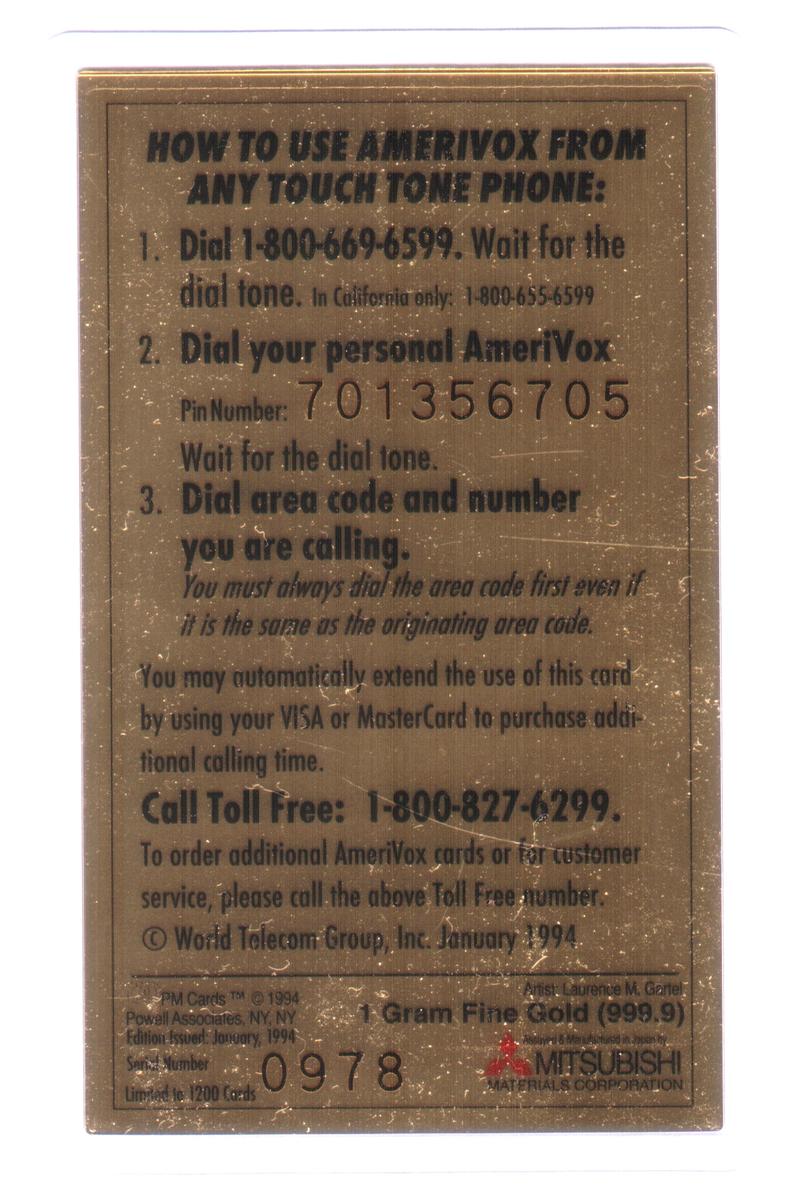 Since we have the world's largest inventory of USA phonecards for collectors, you will not necessarily receive the identical serial/batch/PIN number that we have scanned/pictured.