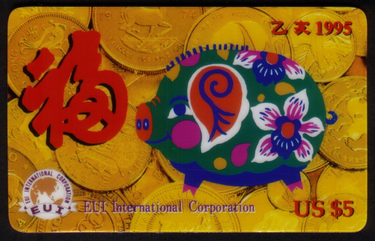 This collectible chip card reflects a blend of philately and numismatics interests focused on Chinese cultural themes, specifically the Year of the Pig from 1995. It serves as a collectible item for those interested in Chinese holidays, animals, and coin collecting, especially within the scope of gold coins and related iconography.