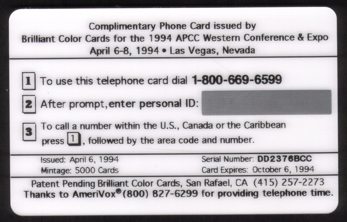 5u Brilliant Universe Phone Card Family (AmeriVox) APCC Expo
