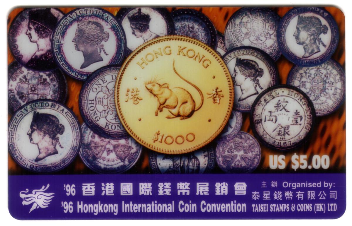 This card was issued by USACard Corporation. It promotes or commemorates events and themes related to coin conventions, numismatics, and collectibles, reflecting interests in currencies, coins, and money. The inclusion of references like “silver coins” and “1000 gold coin year of the rat” connects the card’s theme to precious metal coin collecting, underlining the link between this phone card and worldwide numismatic events, specifically referencing the Hong Kong coin convention.