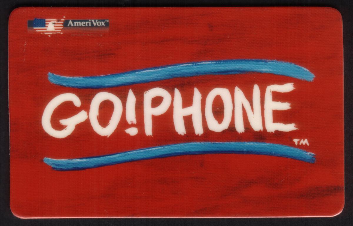 The card also includes the AmeriVox name positioned underneath the main logo, indicating the association with this company. The background of the card is primarily white with subtle green accents on the bottom left and right corners, adding a fresh and clean appearance to the card’s design. The image and text placement suggest a professional and corporate look, centered around the Go!Phone branding.