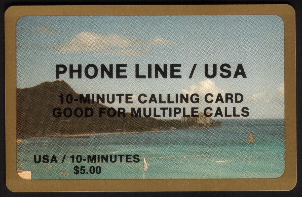 This phone card emphasizes travel and sightseeing themes, featuring natural elements like water, mountains, and beaches to highlight popular tourist attractions in Hawaii. The design and details clearly position this card as a convenient option for short, multiple domestic calls in the United States.