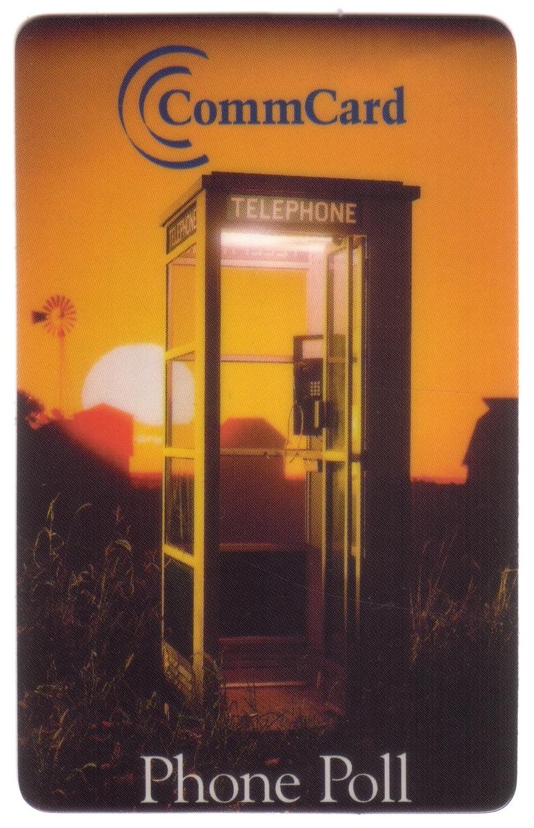 In the lower portion of the card, the text "Phone Poll" appears prominently, identifying the theme of the card. The company name "CommCard, Inc." is printed clearly, indicating the issuing or producing entity. The card also features the designation "telspec," associating it with telecommunications specialists. The design emphasizes telephones on phonecards, fitting into a series related to phone booth imagery and telecommunications motifs.