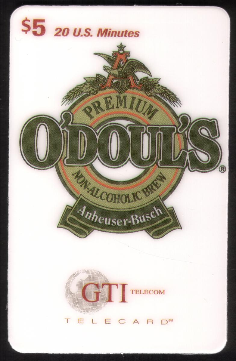 This collectible item serves both as a functional phone card and a promotional tool for O'Doul's beverages, reflecting the beverages, alcohol, and foods market under the Anheuser-Busch label. The presentation is consistent with promotional materials aimed at raising awareness of the O'Doul’s brand in the non-alcoholic beverage segment.