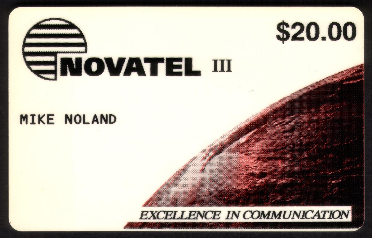 This phone card does not show any imagery beyond the textual information described above. Only relevant service and identification details are present, confirming it as a collectible phone card produced by Novatel. The emphasis on communication excellence and ownership makes it a distinct collectible piece within its category.