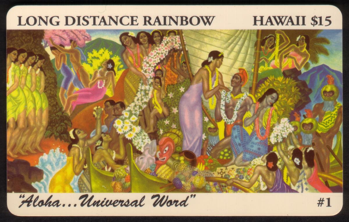 This specimen reflects the cultural and natural beauty of Hawaii, combining traditional dance, leis, and the rainbow, which symbolizes good fortune and connection. It is an official collectible related to the Hawaiian theme and telecommunications services.