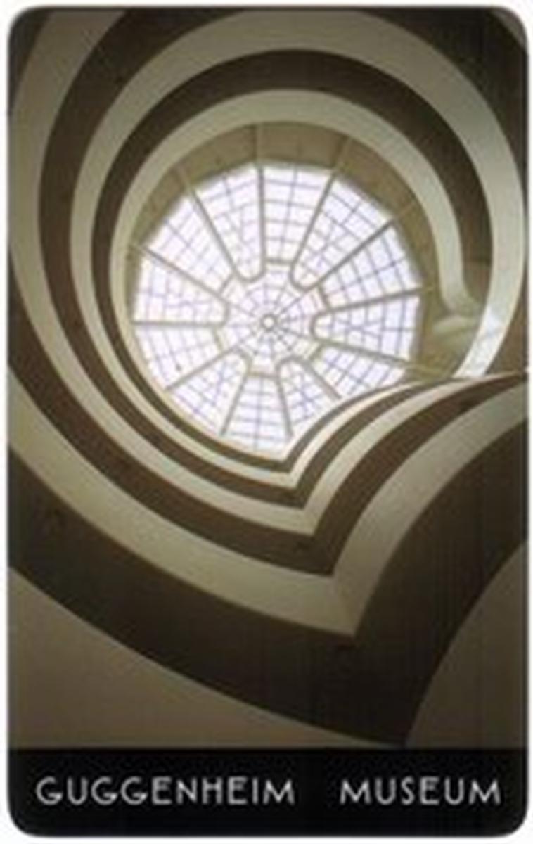 This collectible chip card features the Guggenheim Museum in New York City, New York, USA. The image on the card highlights the museum’s iconic spiral architecture, designed by Frank Lloyd Wright, viewed from an elevated angle that emphasizes its smooth, continuous curve. The building’s white exterior contrasts with a clear sky, capturing its unique modern design that stands out among city landmarks.