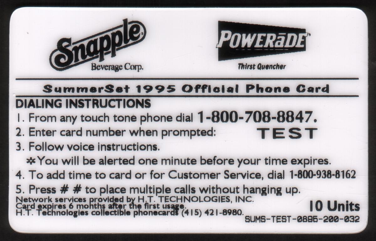 The card reflects strong branding ties with Coca-Cola and Snapple Beverage Corp, indicating sponsorship or partnership with these well-known companies for the SummerSet Festival event. The overall design communicates a lively festival mood from the mid-1990s with vivid, joyful imagery and official branding elements referencing the location and anniversary celebration of the event.