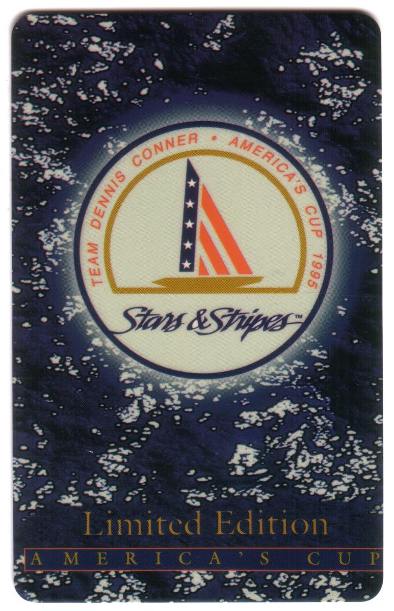 This card connects to the 1995 America's Cup event and commemorates Team Dennis Conner, a renowned competitor in the yacht racing series. The design emphasizes sailing and watersports themes, highlighting the connection to the legendary yacht "Stars & Stripes." The card is part of a limited edition collection associated with yachting and sailing tournaments, specifically the America's Cup competition. It also carries the branding of WorldCom.