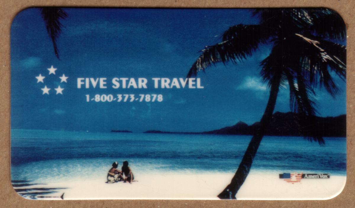 This card is dated 1992 and is associated with Five Star Travel, indicating its promotional use for this travel agency.